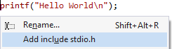 When using the Add Include feature, Visual Assist automatically determines an appropriate path to a header file and the tokens that surround it in an include directive. Example directives include: