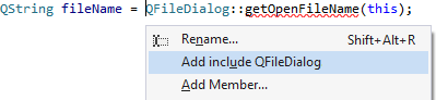 In most cases, Visual Assist adds the header that contains the definition of a symbol, not an umbrella header file that includes it and other related header files. There are a few exceptions for several popular libraries, including Boost and Qt. In these cases, Visual Assist suggests adding the umbrella header file.
