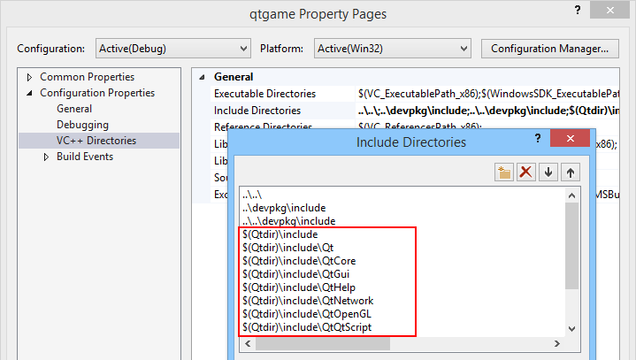 Finally, make sure the QTDIR environment variable has been defined (or substitute your Qt directory for $(QTDIR) in the directory lists.)
