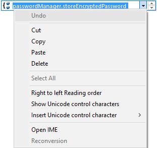 Right+Click in the Context field to access the cut, copy, paste, and delete commands and to find the IME, Unicode character options, and display settings.