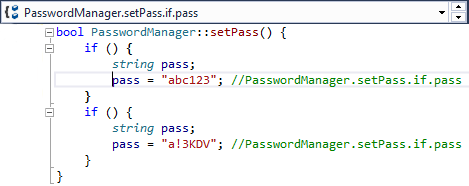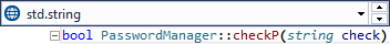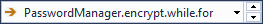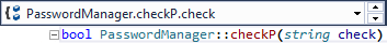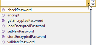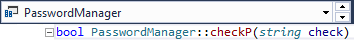 For example, the icon for PasswordManager indicates the symbol is defined in the current solution.