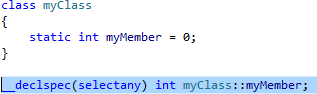In C++, separate VS Snippets are available for implementations of static members. One VA Snippet is used when the implementation can be created in a source file; another is used when the implementation must remain in the header file.