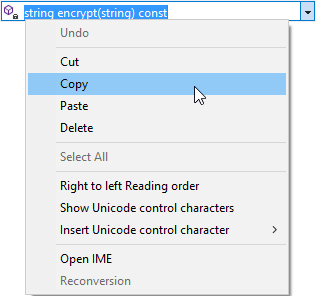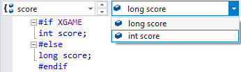 When the caret is on a symbol with multiple definitions, the dropdown arrow at the right of the Definition field opens a list of all definitions of the symbol. The list is informational only; selecting in the list causes no action.