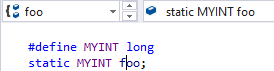 By default, Visual Assist evaluates only preprocessor macros that take arguments, i.e. those defined with (). For example, the Definition field shows foo is a MYINT, not a long.