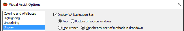 Specify the location of the VA Navigation Bar in the options dialog. Disable the feature, or eliminate the IDE's Navigation Bar or Wizard Bar, to conserve space in your source windows.