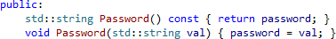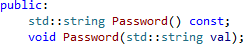 Visual Assist also scans the VA Snippet for Encapsulate Field for $GeneratedPropertyName$. If two occurrences of the reserved string are found, adjoining text is used in default accessor names. (The presence of "void" determines the setter.) For example, the following in the VA Snippet causes Get and Set to be prepended to default accessor names: