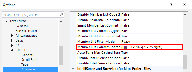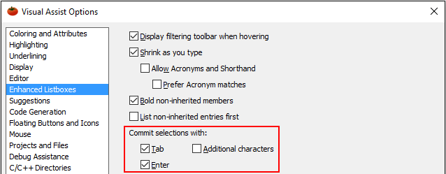 In C/C++, populate enhanced listboxes with content from Visual Assist or from default Intellisense. Select the parsers that produce the most accurate listboxes for your solution.