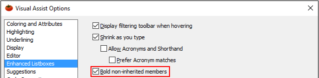 Bold non-inherited members in Enhanced Listboxes to determine the origins of methods.