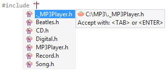 Visual Assist opens an enhanced listbox in C/C++ after typing #include and a double quote. Force open the listbox by pressing Ctrl+Space between double quotes.