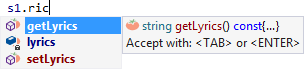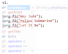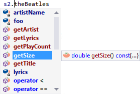 Completion listboxes, on the other hand, appear when you type the prefix of a symbol and press Ctrl+Space. The listbox contains symbols valid in the context that contain the characters you typed. Completion listboxes are available any time and contain more than just the methods and variables of a members listbox.