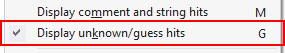 You can toggle display of unknown/guess hits using shortcut (G), or the context menu of a results window.