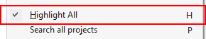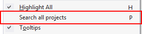 Toggle scope of search via shortcut (P), toolbar icon, or context menu (Right-Click or Shift+F10, J).