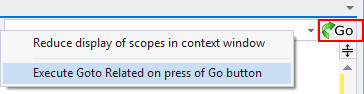 Finally, you can make the Go button in the VA Navigation Bar execute GoTo Related instead of the default GoTo Implementation. Make the change in the options dialog of Visual Assist.