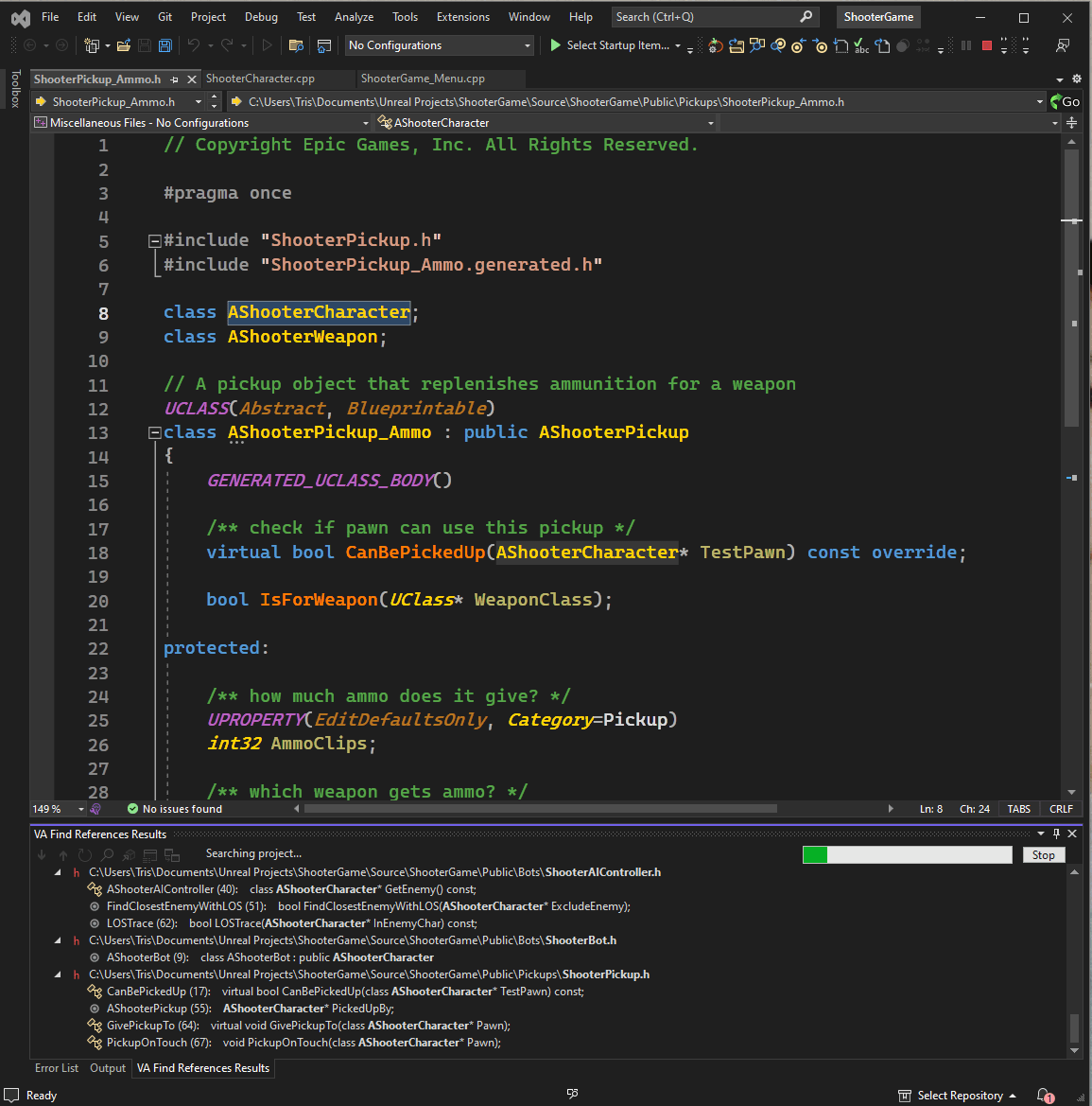 Find references time increases with the number of symbols in the database. However, VA’s feature has been greatly improved for performance and speed—almost ten times faster than before! That means that this performance improvement applies to many key features and navigations.