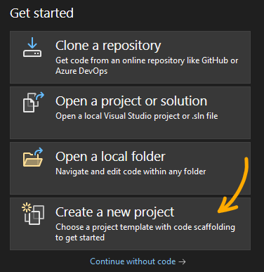 Start by opening Visual Studio and create a new project or clone an existing repository to start your first project file.