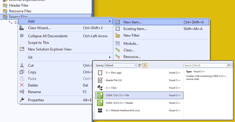 - Adding a CUDA C++ or Header file