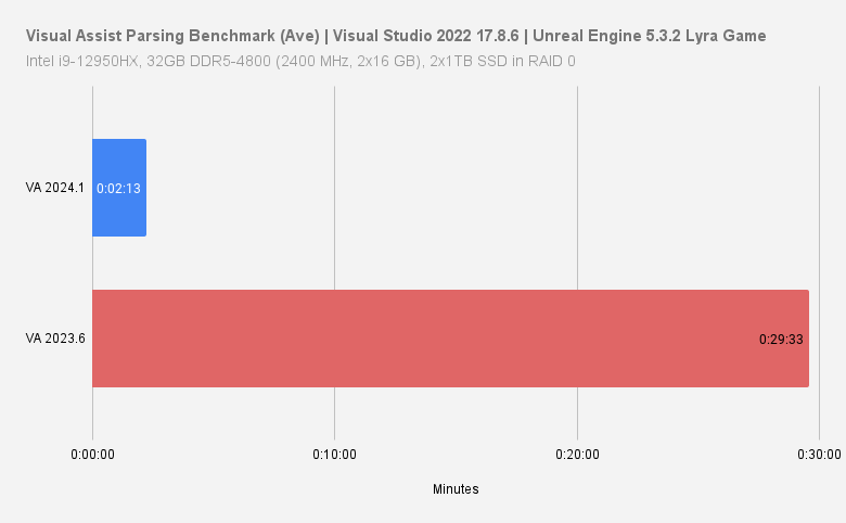 | Visual Assist 2023.6 | 0:29:37 | 0:28:52 | 0:30:09 | 0:29:33 |