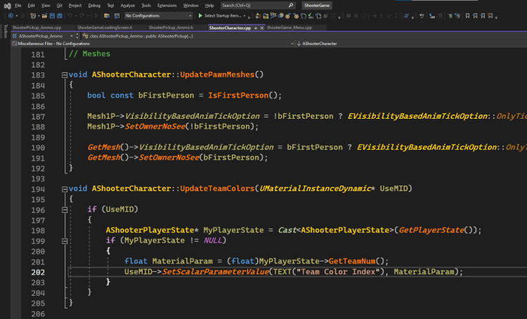 Sample C++ code for an Unreal Engine game project. Syntax highlighting provided by Visual Assist plugin.