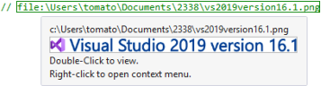 If Source Links and its built-in File Viewer plugin are enabled, a preview of the contents of a commented file path appears in a tooltip when you hover over the path.