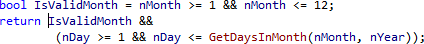 If the following example, IsValidMonth replaced "nMonth >= 1 && nMonth <=12".