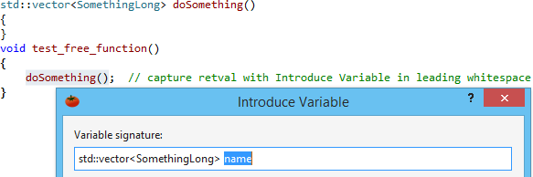 Introduce Variable is also available in white space, in which case the refactoring will automatically select an expression and introduce a variable to capture the return value of a method/function call.