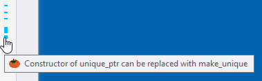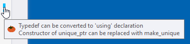 Visual Assist also helps in the process of transitioning from ReSharper, the code inspection functions recognizes the clang-tidy skip directives. The following is an example of how they should be stated: