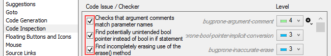 The Clang check name is an identifier that helps you find your code issue description through the code inspection. For more information, see List of Code Inspections.