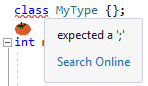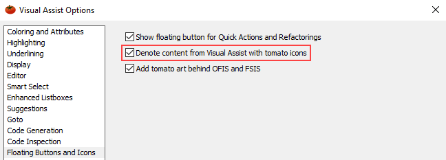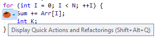 If the option to display tomato buttons is enabled in the options dialog for Visual Assist, quick fixes are available by mouse.