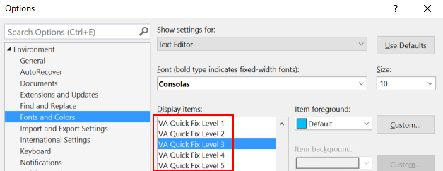 Change colors associated with levels one-five in the options dialog of Visual Studio. Color for levels one-four is effective in the tool window and text editor. Color for level five is effective in the tool window and only the scrollbar margin of the text editor. (Level five issues are dimmed in the text editor, not underlined.)