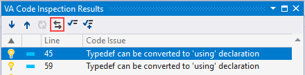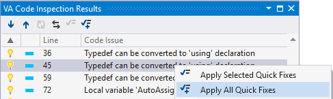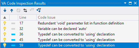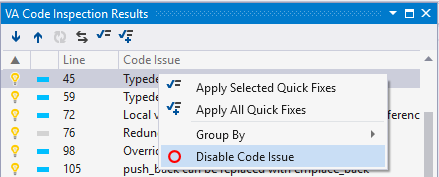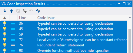 Open the VA Code Inspection Results to see all code issues for the current file, whether or not their underlining is enabled.
