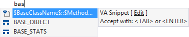Additionally, several VA Snippets define the behavior of features in Visual Assist, such as the format of code created from usage.