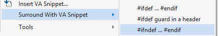 VA Snippets of type Surround With can be selected from a menu.