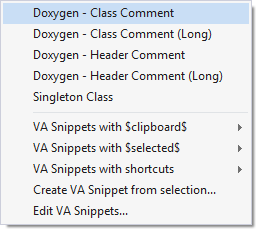 Default VA Snippets with-title-only include ones that insert Doxygen comments.