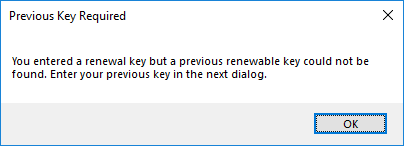 If you enter an activation key that you obtained after renewal of software maintenance, and a qualifying installation of Visual Assist cannot be found on your PC, Visual Assist will prompt for a previous activation key. In the subsequent dialog, enter the activation key associated with your original purchase, or an activation key obtained after a a previous renewal of its maintenance.