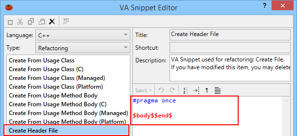 For example, the default VA Snippet for Create Header File makes use of the Microsoft #pragma directive.
