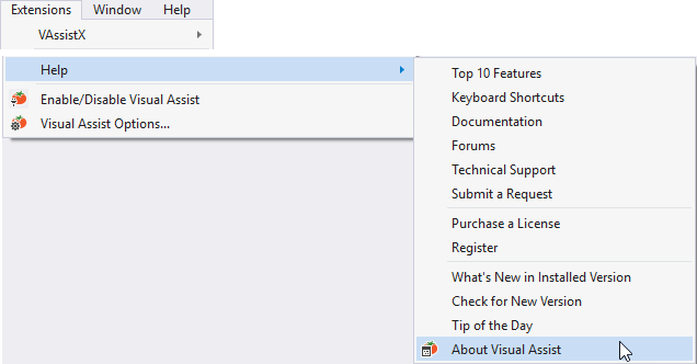 When requesting technical support, submit version information with your request. Obtain the information the System Info pane of the option dialog or the VAssistX entry in the menubar (Alt+X, H, A).