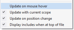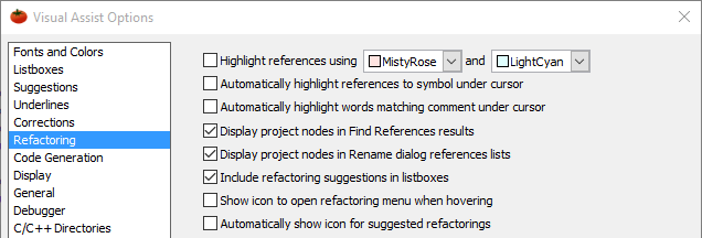 Control the features of Visual Assist with a comprehensive options dialog and with options embedded in context menus of tools windows.
