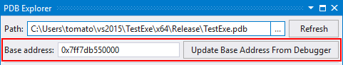The base address of a loaded module is not necessary to browse the symbols in the loaded module. A base address is required, on the other hand, before PDB Explorer can instruct the debugger of Visual Studio to jump to locations in the virtual memory of a running process. A base address is also required to browse symbols nearby one whose address in virtual memory was obtained from Address Resolver.