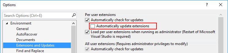 - Enable updating of all extensions in Tools | Options | Environment | Extensions and Updates