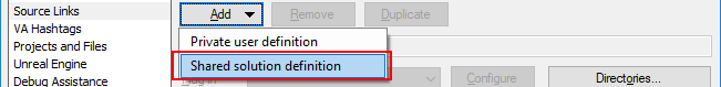 Shared solution definitions are created in a subdirectory of the solution directory, .va\shared\SourceLinks. All users of Visual Assist who open the solution and enable Source Links have access to the shared definitions.