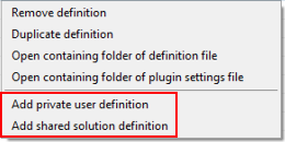 When a solution is open, create a private user definition via the Add-button drop-down.