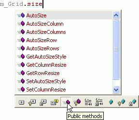 Use the filtering toolbar after typing shorthand, and/or acronyms, to reduce matching entries to those of a particular type. For example, public methods related to size.