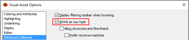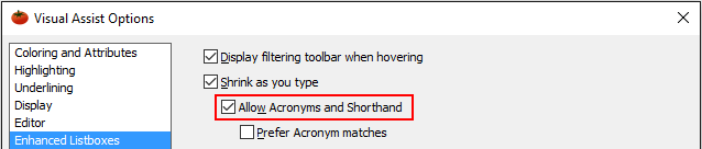 The larger the substrings in your shorthand, the more likely Visual Assist finds the symbols to which you refer. On the other hand, the longer the substrings, the less valuable shorthand becomes. After using the feature for a while, you find the proper balance between the two extremes. Three-character substrings become common.