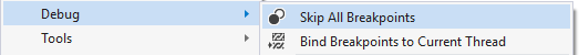 Debugger breakpoints in Visual Studio can be enabled and disabled, both individually and en masse. And when debugging, enabled breakpoints can be individually skipped. But within Visual Studio, there is no means to skip all enabled breakpoints. To effectively skip all breakpoints, one must disable all of them, but disabling also requires they be re-enabled individually. Hence, there is no means to conveniently toggle the state of breakpoints in a single section of the application.