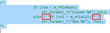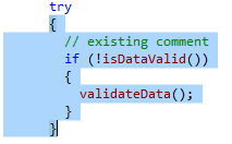 If a subset of lines in the selection is already commented, Visual Assist will insert additional comment characters so the block can be uncommented to its original state.