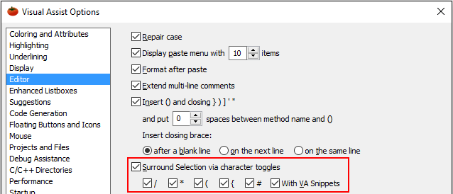 Simple but valuable commands in Visual Assist make it easy to surround selections with: