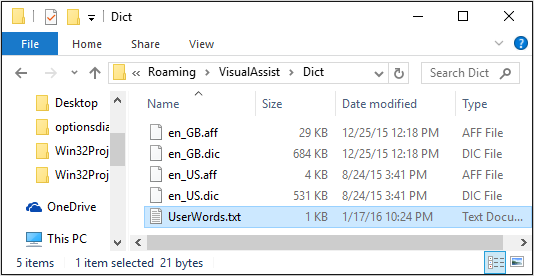 7. Copy the dic and optional aff files from the uncompressed archive to the \Dict subdirectory of the Visual Assist installation directory: