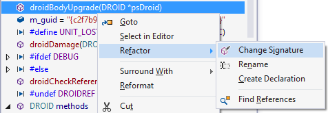 Commands applicable only to single entries, e.g. refactorings, are available in the context menu only when you have selected a single entry in the VA Outline.