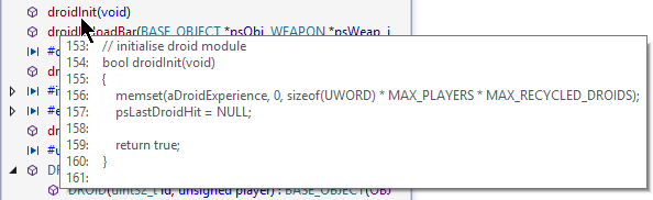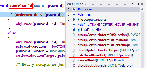 As you move through source, the entry in the VA Outline corresponding to your current scope appears bold.