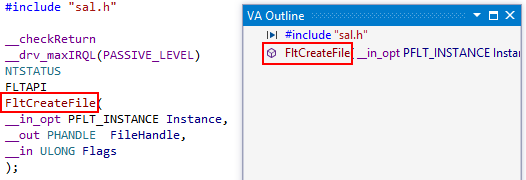 The VA Outline excludes Microsoft source-code annotation language (SAL) from entries, making SAL-annotated methods easier to locate.